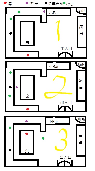 示一位學長去另一旁待命,時機一到便偷偷地拍攝錄影。而後自己往下邊的位置