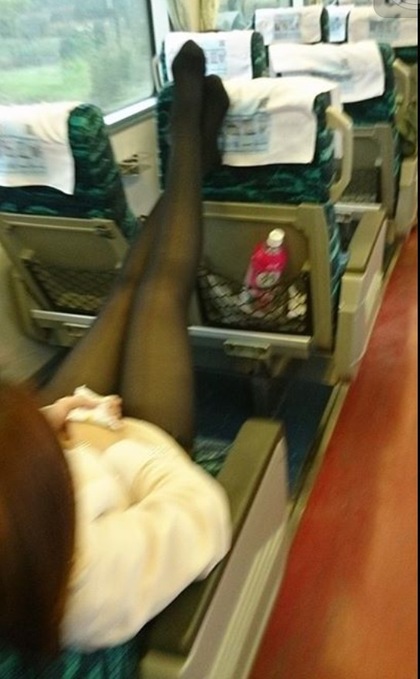 一名乘客在搭莒光號火車,起身上廁所時發現前排女乘客竟把穿著透明黑絲襪的長腿,直接大喇喇地擺在前座椅背頭上,整條腿赤裸裸全都露,幾乎露到底,害得後座乘客眼睛不知道該往哪裡擺。
