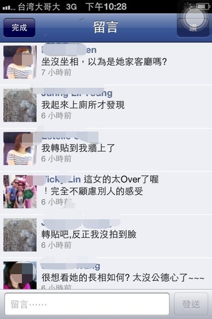 該網友把照片po上臉書,馬上有其他網友看不過去直說:坐沒坐相,以為是她家客廳嗎?也有網友覺得沒公德心,但更好奇這妹的長相,也有網友不忘問,她穿的是短裙還是短褲?!