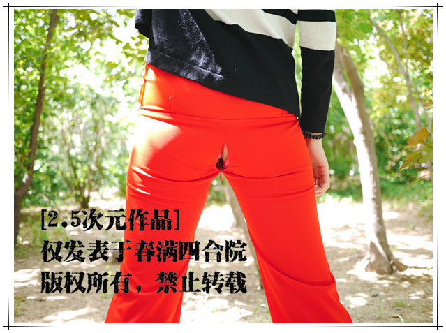 紅色長褲搭配黑色陰毛,真是絕頂誘惑!