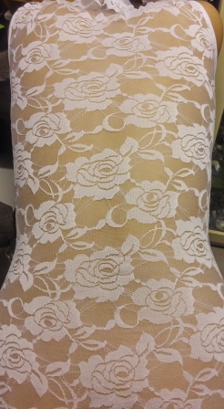 第一張照片猛一看,我還以為是舖了桌巾的桌子,仔細一看才發現原來是包裹著佳人的半透明連身裙!
