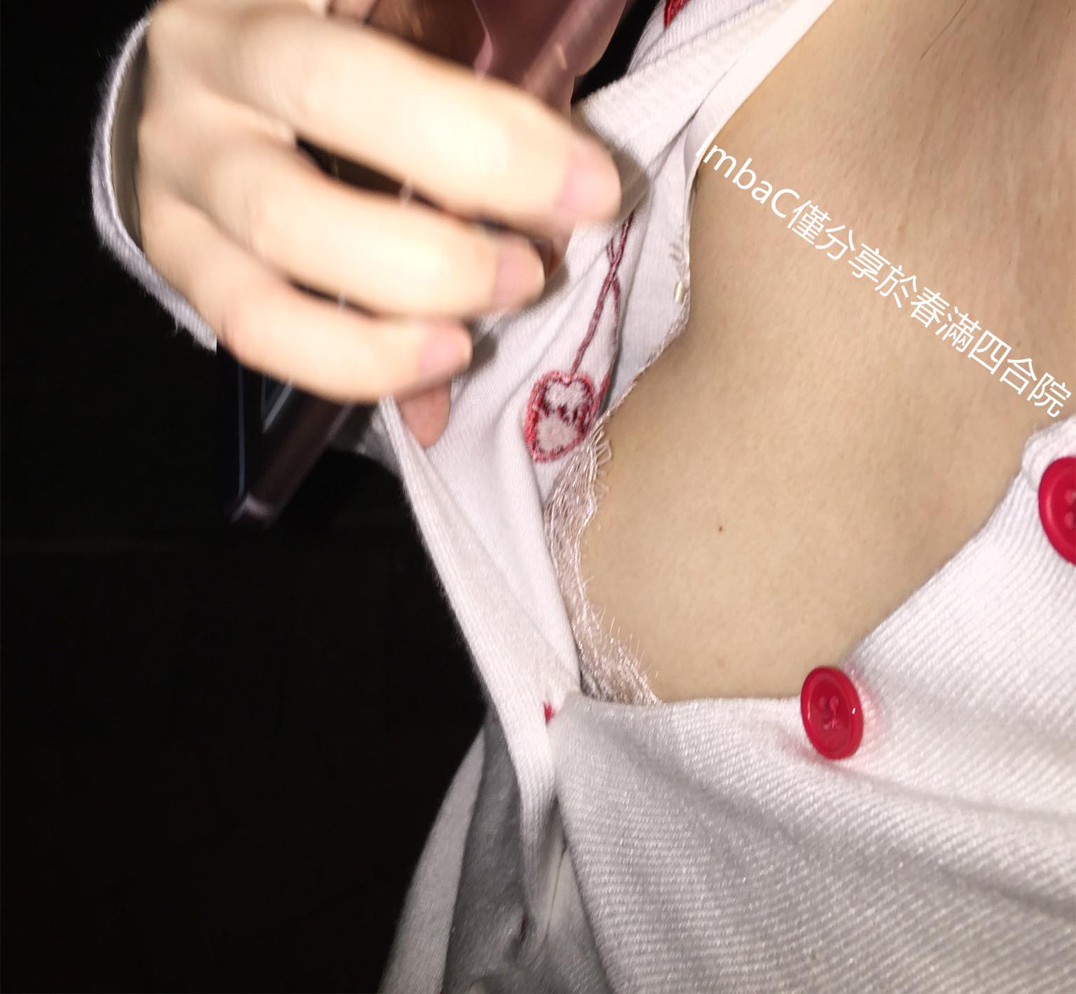 很快地我就發現了裡面的玄機,小騷貨的上衣的釦子被我解開,在大廳廣眾下強制露胸拍照。