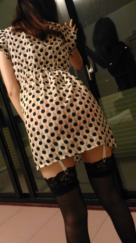 吊帶襪露出大腿一截,這樣去公園散步,這也太招搖了。