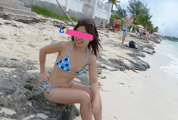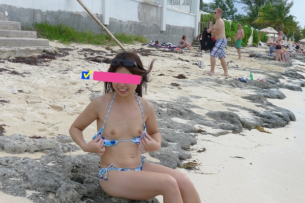 在游客眾多的沙灘玩耍,芬妹是特別開心