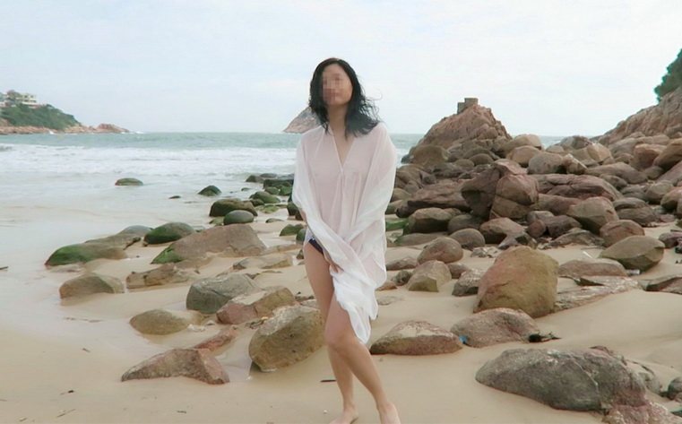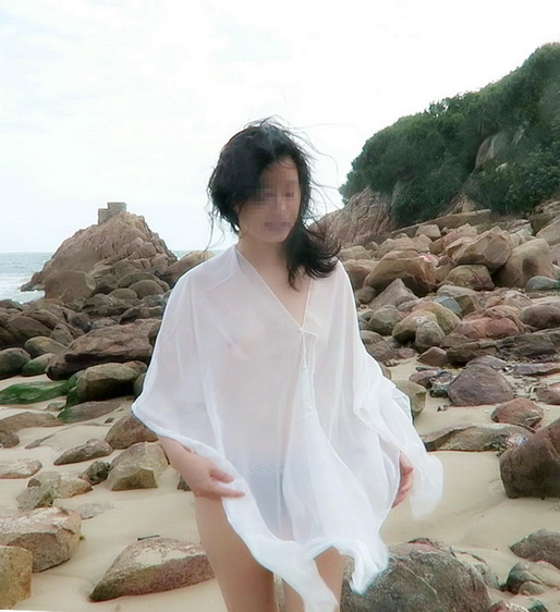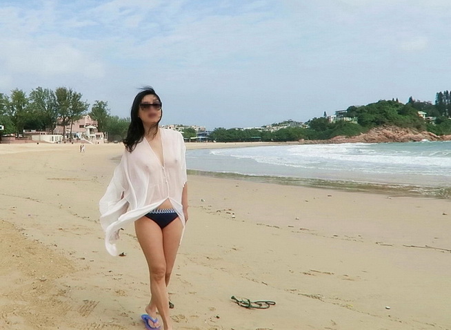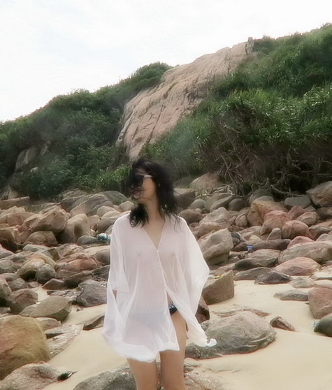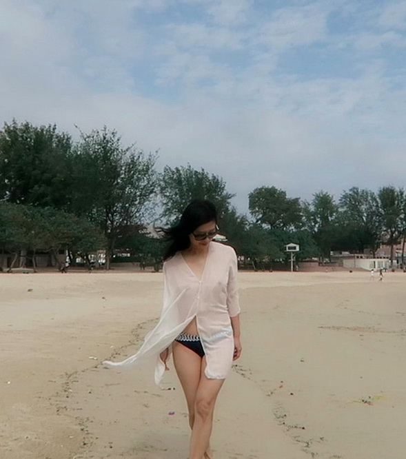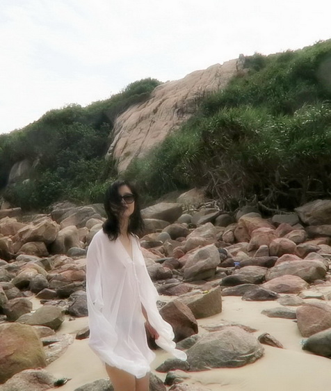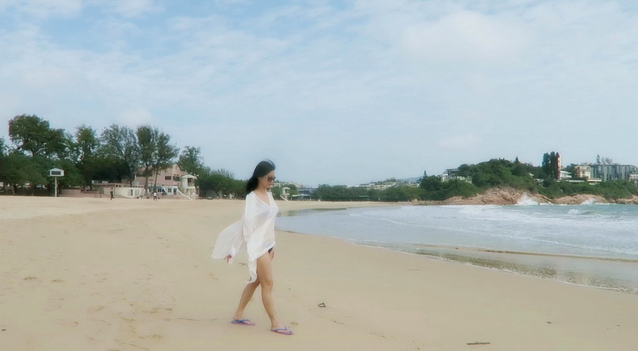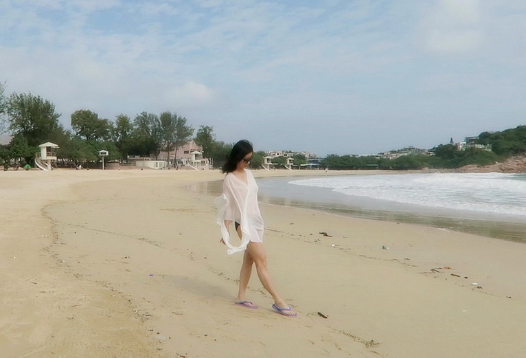 小菲趁陽光不太猛, 到沙灘走走, 享受涼風.