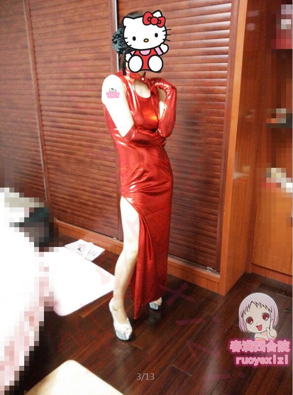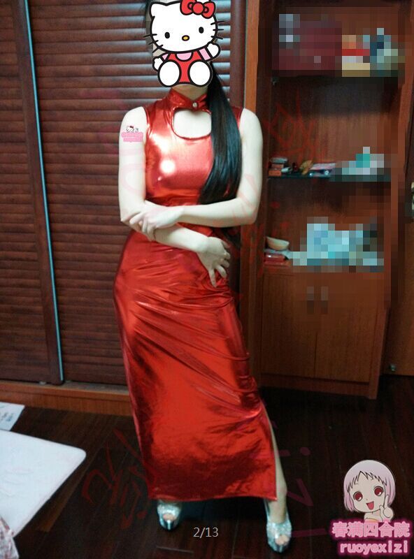 紅色旗袍貼身吸引,一條美腿勾人心魄……