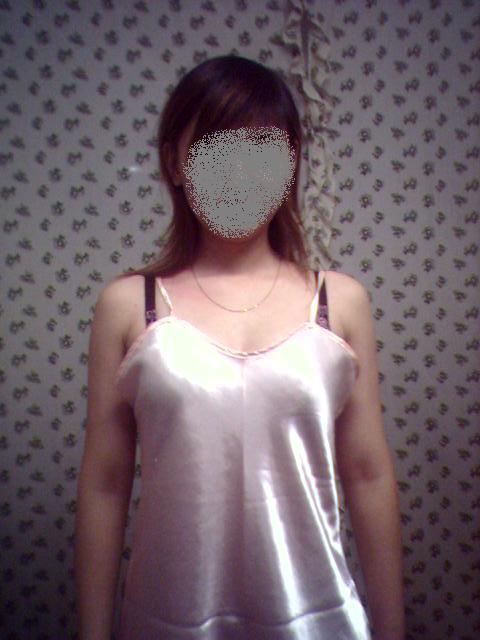 絲質睡衣,幾乎完全透明的,如果裡面沒穿內衣,肯定可以看到乳頭。