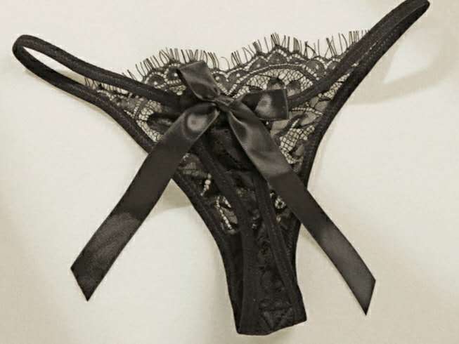 明的小内裤,前面是一块黑色类似的小小三角区,后面是像丁字裤一样的一根细