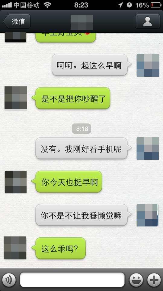 「哎呦!刺激這麼強烈啊?」老婆回覆了。老婆每天七點多就會醒,我也是