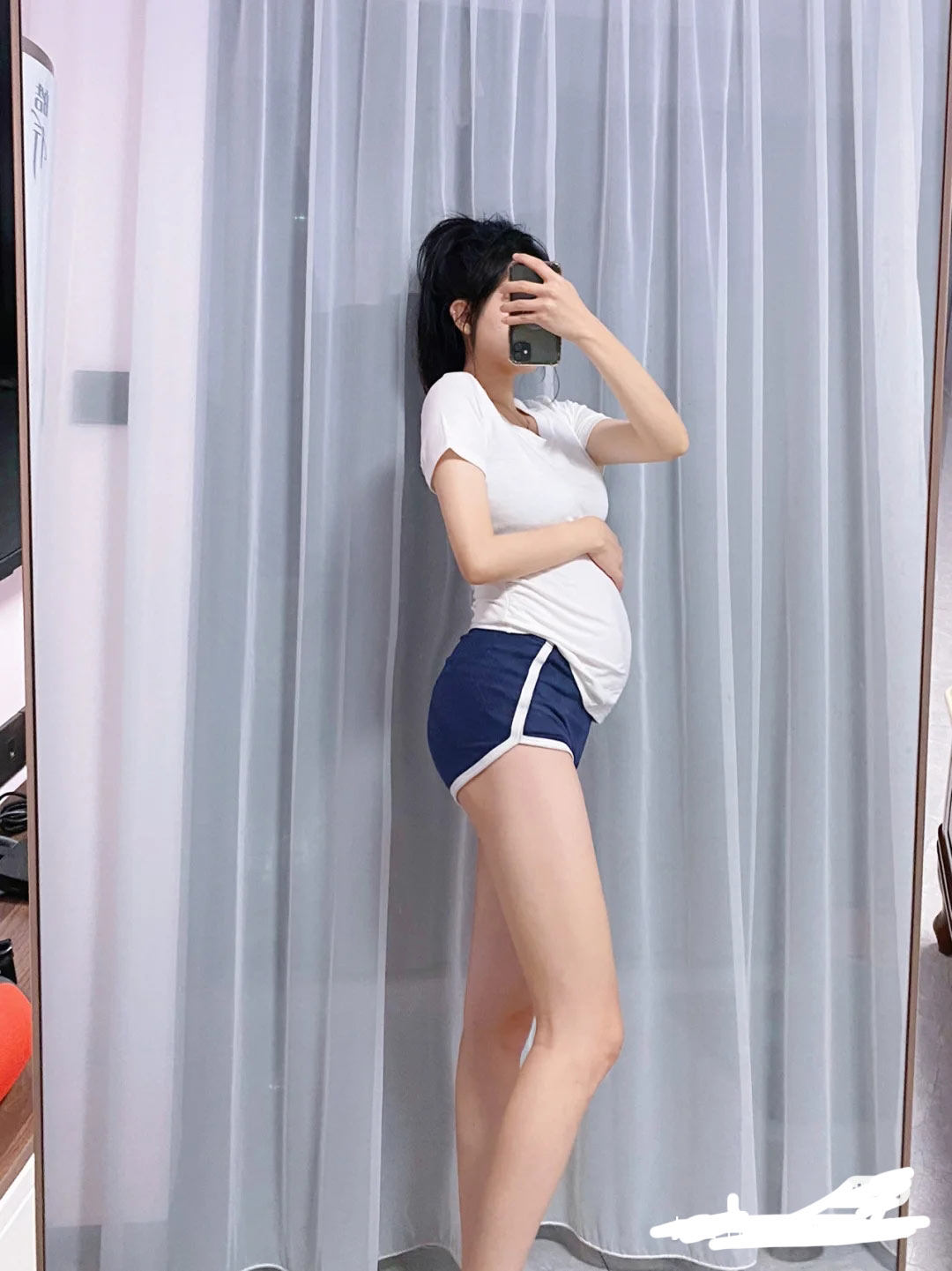 針織短褲的褲腿很松,裡面透出粉色帶有草莓圖案的小內褲邊緣。
