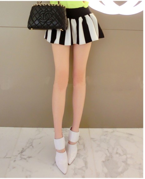 而小媛的下身穿得更加性感,在一條長度最多只有30公分的黑白豎條紋超