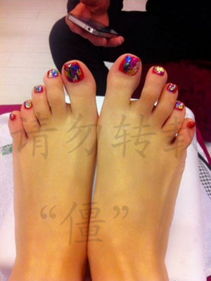 小媛說完後從我手裡抽出另一隻玉足,同樣踩到了我的另一條大腿上,現在