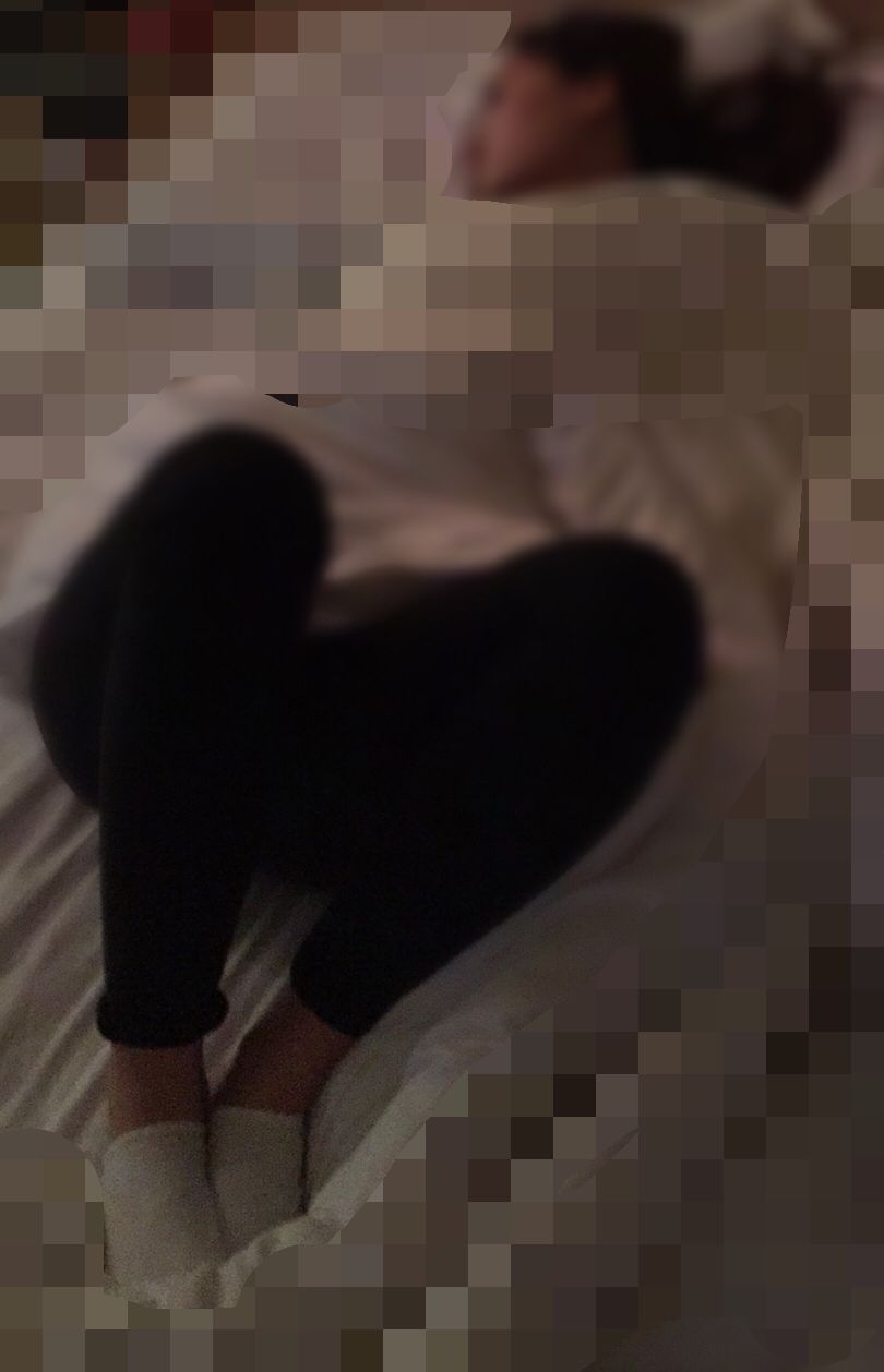 也许是因为她刚洗完澡,脚还有点潮,竟然完全没有发觉,我看着她那双美脚穿着装满我精液的袜子,感觉内心十分的满足,我就问她,“你不睡觉啊?”她回答说“睡啊”“那你还穿袜子?“哦,最近我来事了,脚怕着凉,所以穿袜子睡觉”