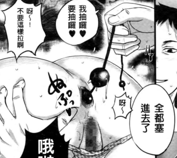 「啊!輕……輕一點…啊~~嗯……啊……陳叔!不可以!不要再繼續塞進去。」茶茶抓住陳叔由背後塞拉珠的手,低聲的要求陳叔停止。
