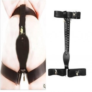穿著這款貞操帶的女人,當她兩條腿貼緊站立,那麼從正面來看她的陰部的