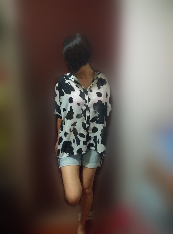 色的小熱褲,裡面當然是真空的,兩顆可愛的奶頭都凸了出來,可能是之前在洗