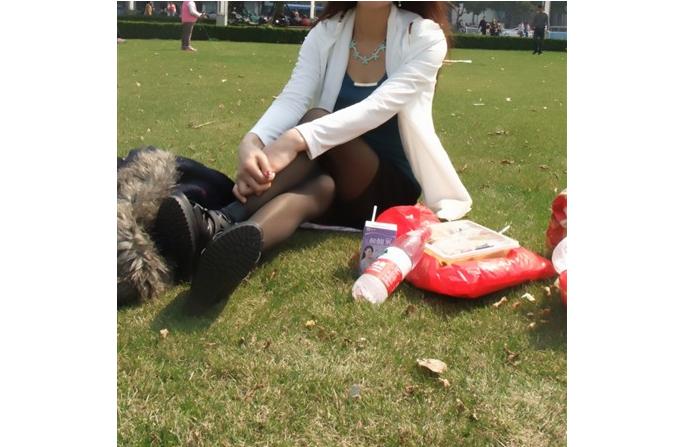 上咖啡的絲襪,吸引了不遠處門口幾個男子的眼光。