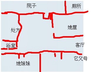 是廚房,客廳那邊是兩個屋,一個她父母,一個她妹妹。她屋的床是豎著正對門