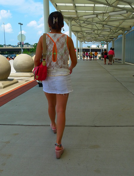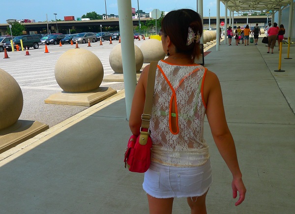 芬妹新購的炮衣, 背部鏤空, 露出裡面奶罩線