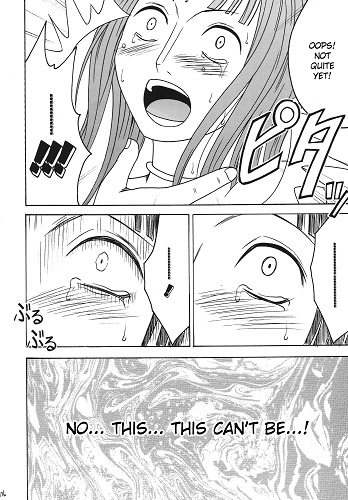 就在離羅賓高潮只有一寸的瞬間,緩慢光線又一次照射到了羅賓的身上,羅賓唾手可得的高潮被生生的踩下了刹車。羅賓的身體,被鎖死在了即將高潮前最敏感、最焦躁、最渴望的狀態中,這種苦悶無法消減,極難忍耐,是一般的調教無法做到的寸止地獄。三人組並沒有因為羅賓被緩慢光線鎖住而停止愛撫,反而開始更加激烈的動作,想到這些新的刺激會疊加在自己原本就即將高潮的軀體上,羅賓不禁脊背發涼。終於,30秒時間即將過去,羅賓已經做好了要連續高潮個四五次的心理準備,咬緊了牙關等待緩慢光線的解放。