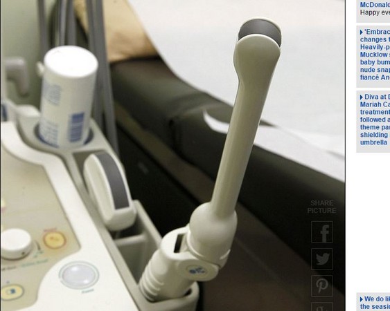 讓我驚訝的是,這根探頭連手柄目測大概有大半個男醫生的小臂長,整根長桿至少有兩根手指一般粗細,探頭頂端