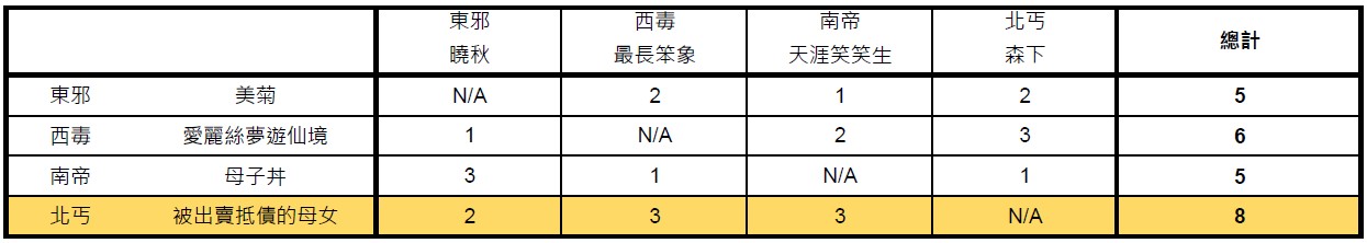 得票最高的是《被出賣抵債的母女》!恭喜森下,再次登上華山之巔!