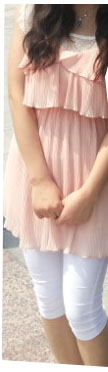 女友敲門的聲音。打開門,女友今天穿著粉紅色雪紡上衣,白色的緊身七分褲,