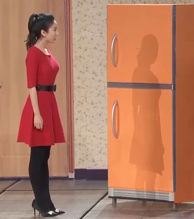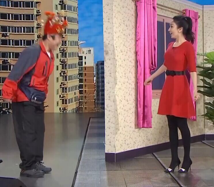 隨著掌聲響起,小品拉開了帷幕,穿著一身紅色連衣裙,黑絲高跟的婁藝蕭