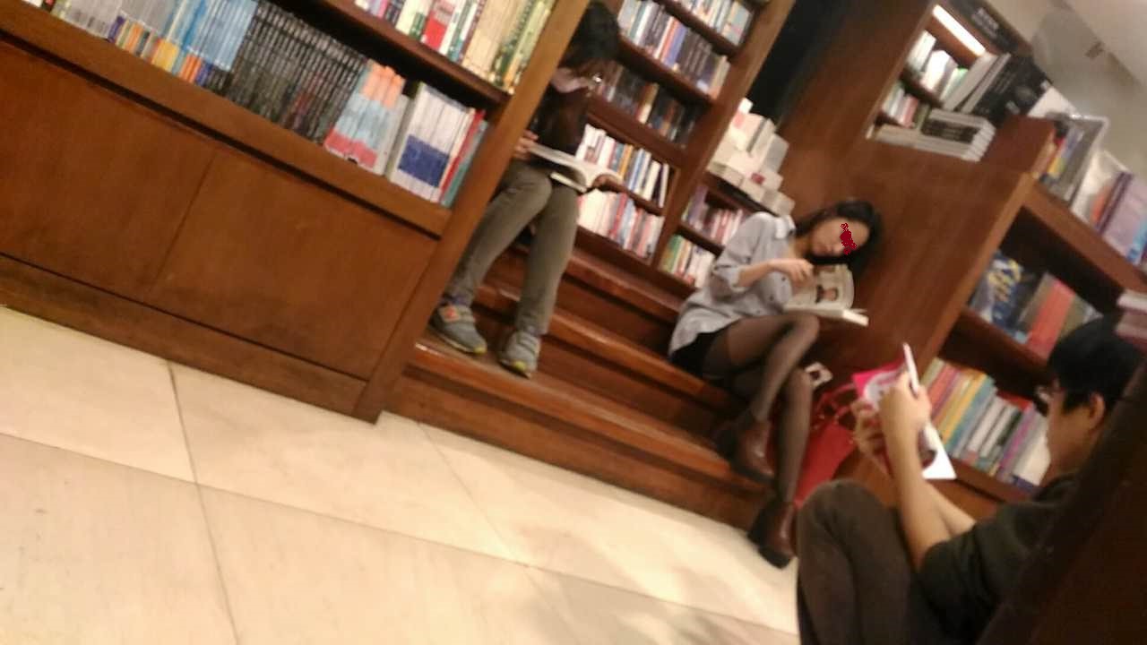 誠X書局的這個位置確實是個好地方,以前也陪過院友在此暴露女友,當時那無內齊B短裙造成附近空氣隱隱的激情與騷動,而我與院友兩人在旁邊書架位置觀察,看到許多男人飢渴驚喜卻又裝作鎮靜的表情很是有趣!!