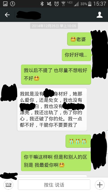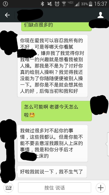 大家看下面的聊天截图,女朋友也知道也默许的我的绿帽癖了已经。在我疲软的时候经常和我说之前出轨的对象虽然持续时间不长,但是真的很粗很大,进去很有满足感什么的。我也就很兴奋的又可以硬起来了。