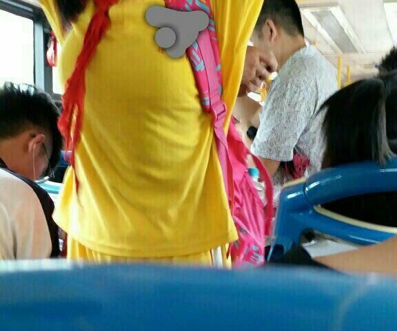 昨午在公车上拍的…小六已在放暑假吧?…这小女孩便应该是小四或小五级…已见玲珑浮凸…是吃了太多激素?