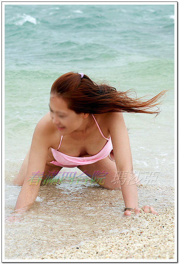 模特兒般的身材,配上粉紅色的泳衣,美艷性感中帶著少女的可愛,