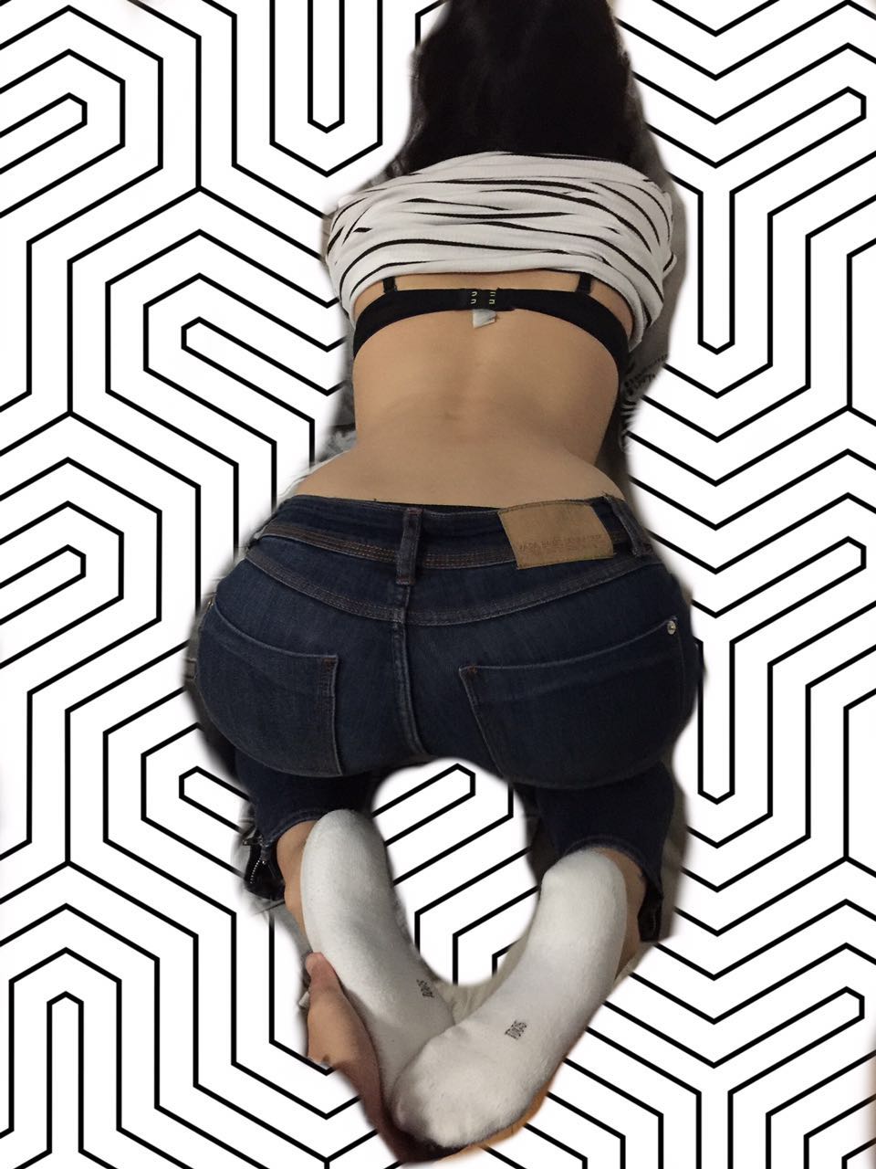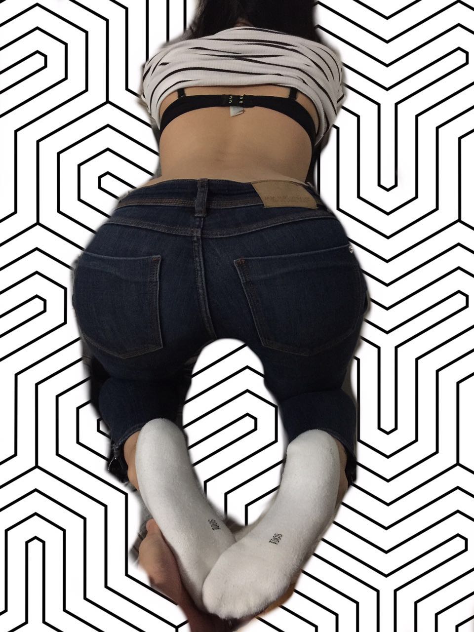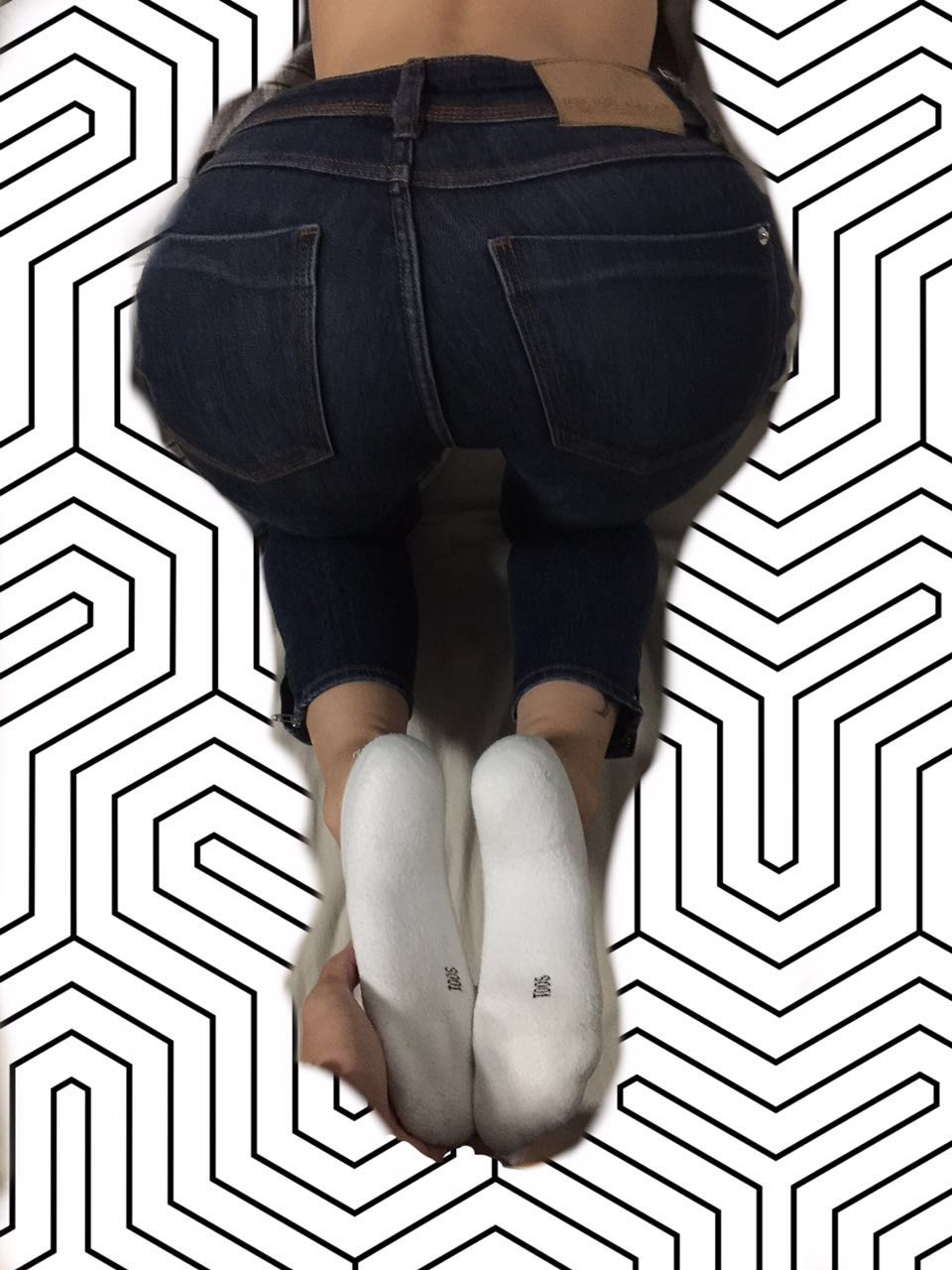 這屁股加上白襪~好想把牛仔褲扒到膝蓋從後面像幹母狗一樣拼命享用肉穴跟白襪美腿呀!