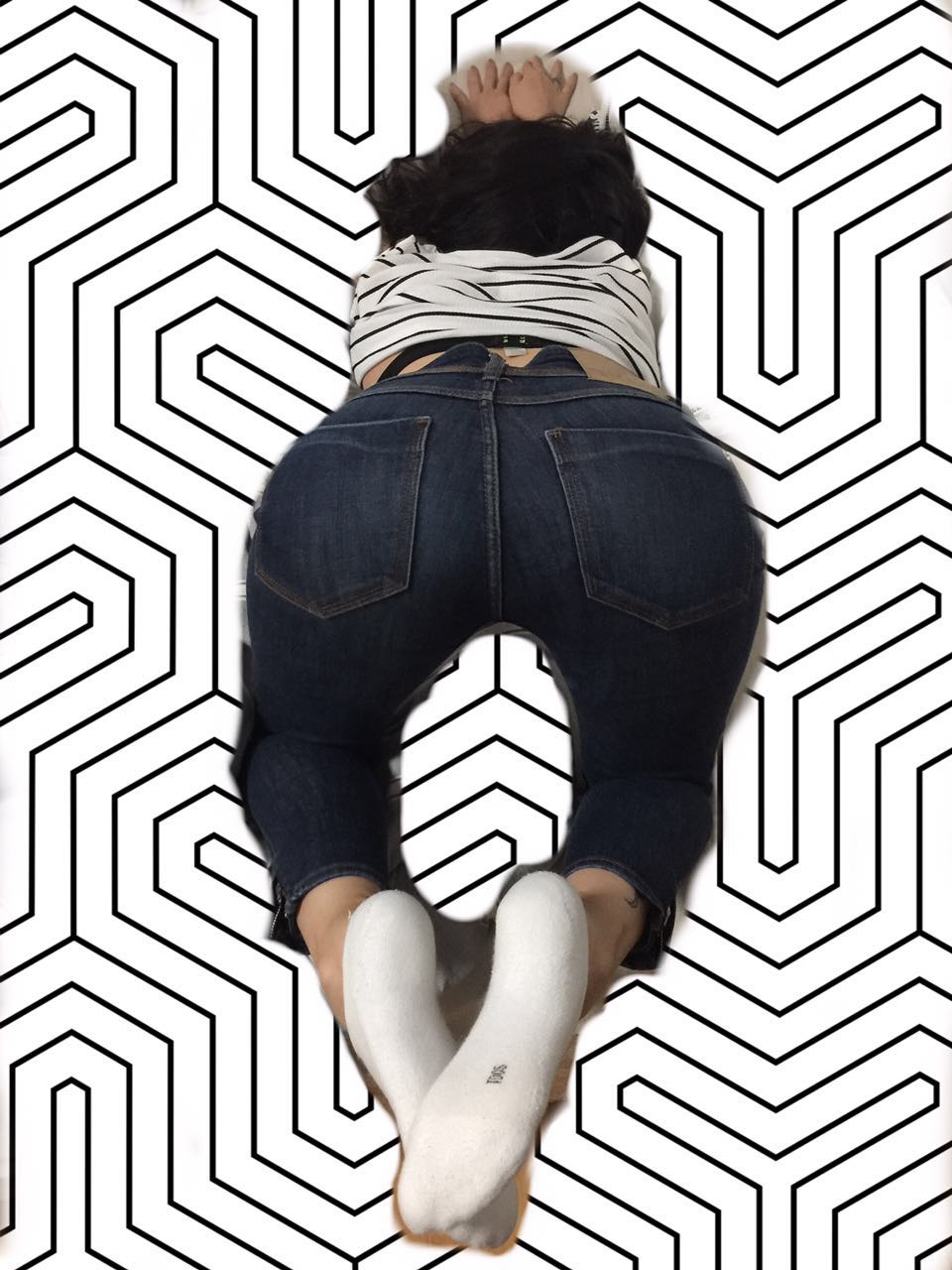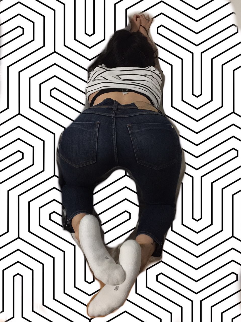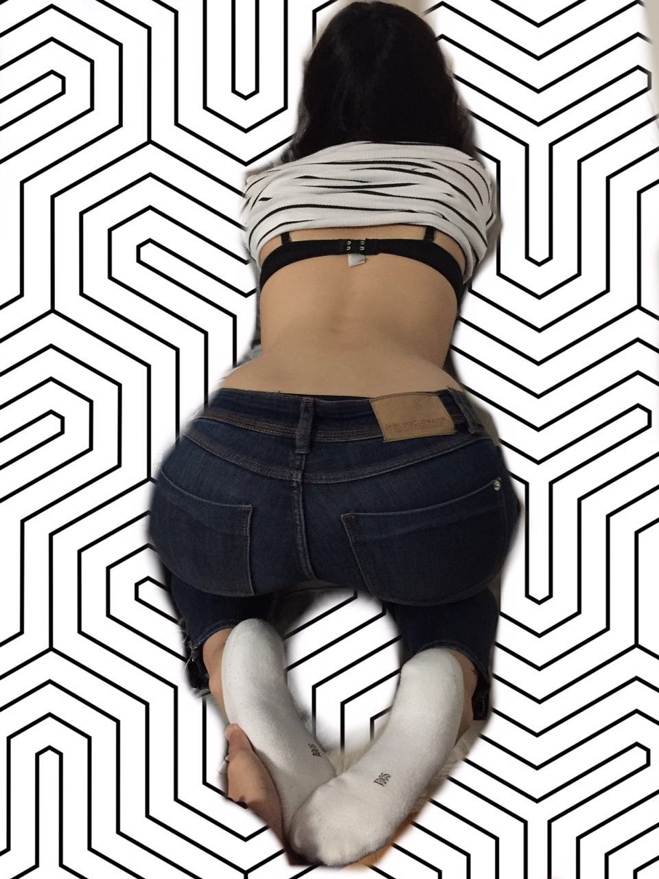 這屁股加上白襪~好想把牛仔褲扒到膝蓋從後面像幹母狗一樣拼命享用肉穴跟白襪美腿呀!
