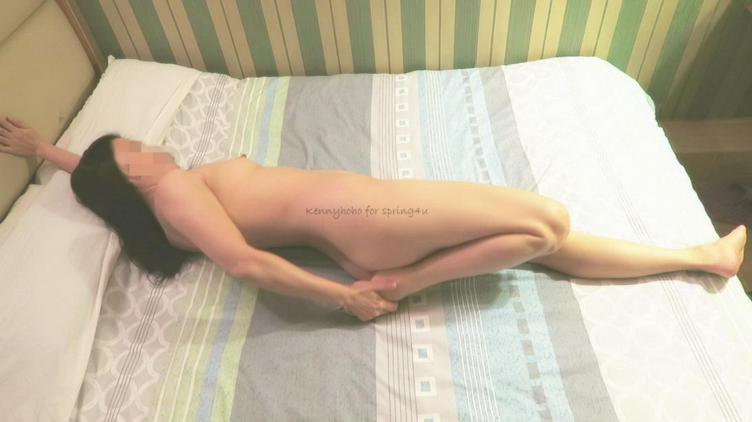 女友小菲文職工作, 下班和假日總想多做運動. 她和女同事和女朋友上瑜珈課, 做不同的舒展筋骨式, 但擔心姿勢不對. 這是其中一式, 屈折一小腿於大腿之下停頓一分鐘, 院友看到連環圖片如發覺不妥, 請不吝指出.  瑜珈衣物朋友看到可能認出尷尬, 只好赤裸展示.