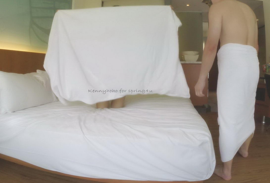 異的,是他抛了一條大毛巾給我,叫我鋪在床中央!。