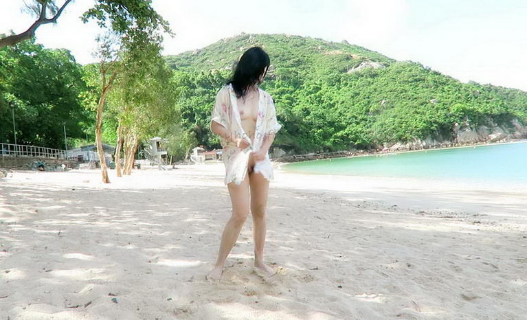 男友是呼沒注意到海邊風很大兩隻手再加上自己的身體做屏幕有太多的空隙可以讓外人可以看到全裸的女友