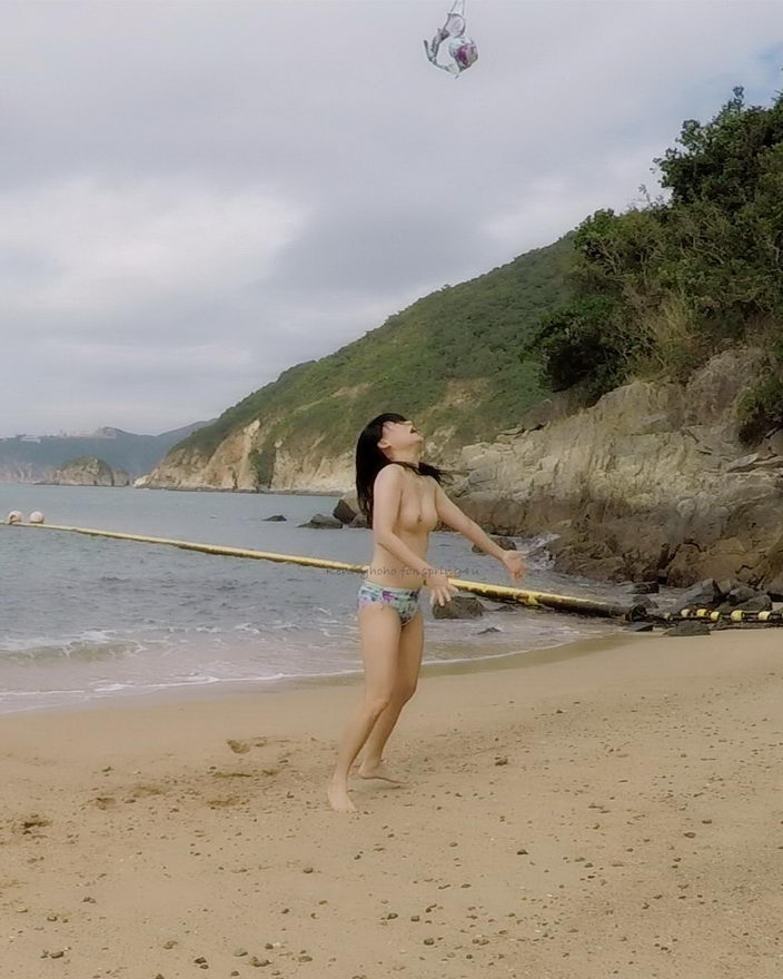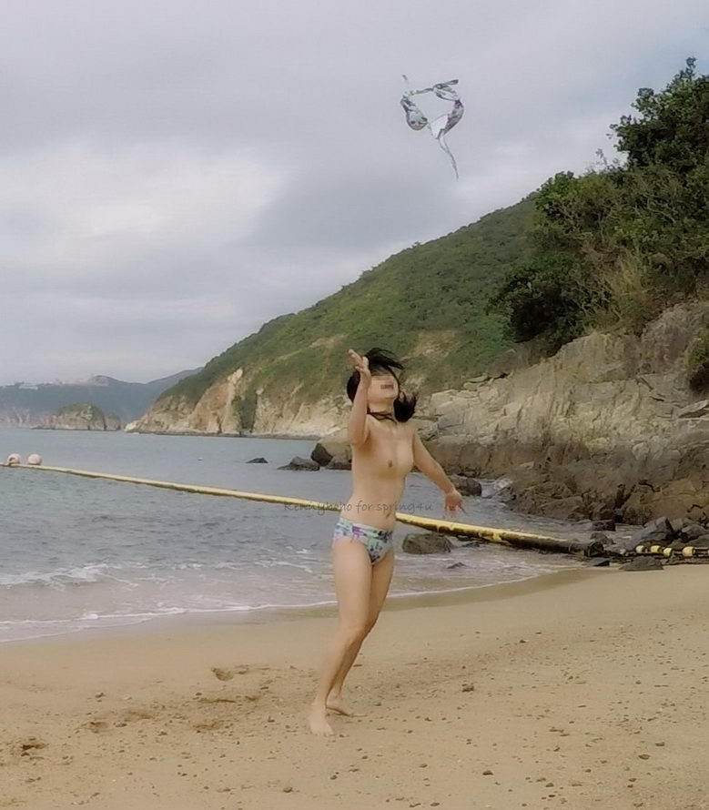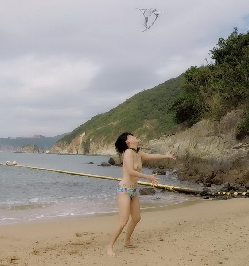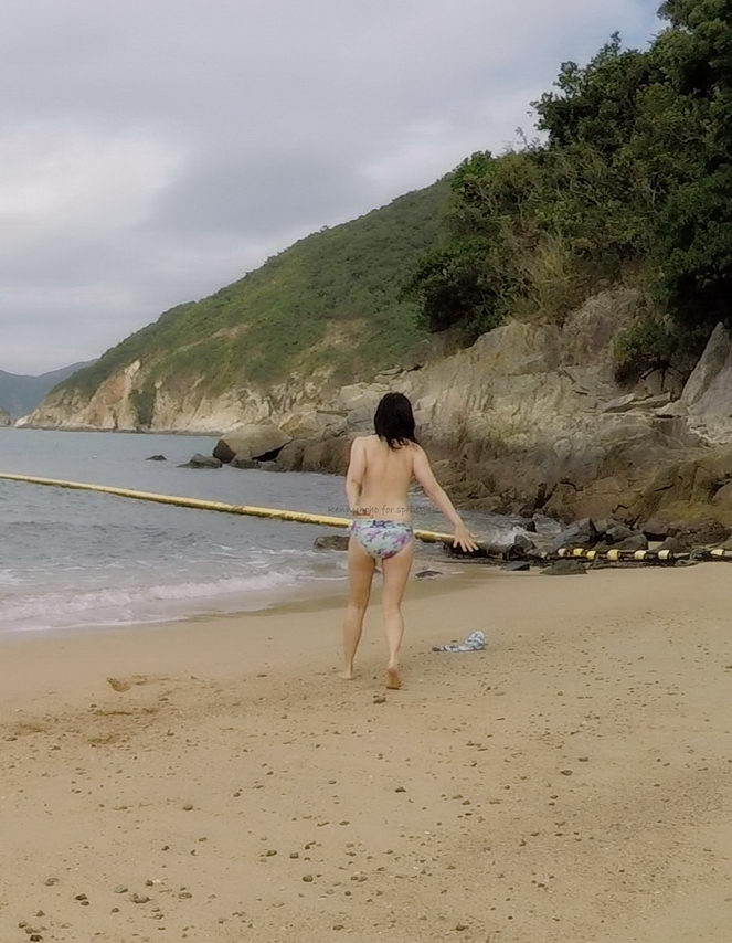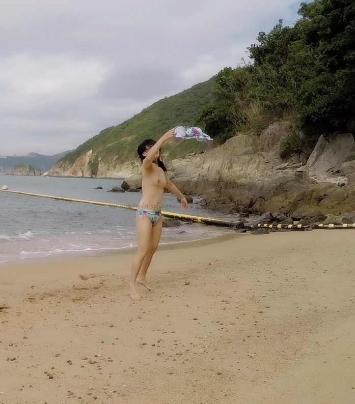 小菲發現這飛碟遊戲也頗好玩. 丹青大爺說上衣或被海水捲走這點, 小菲沒想過. 當天風很大, 其實有這個可能.