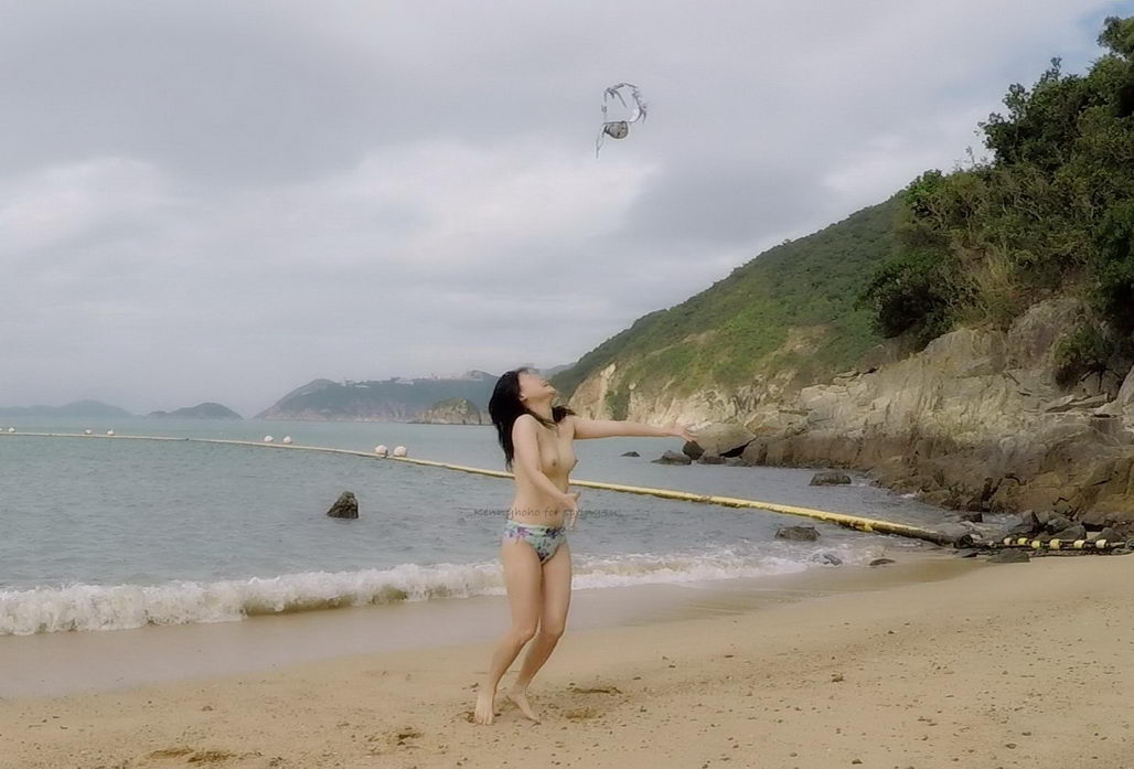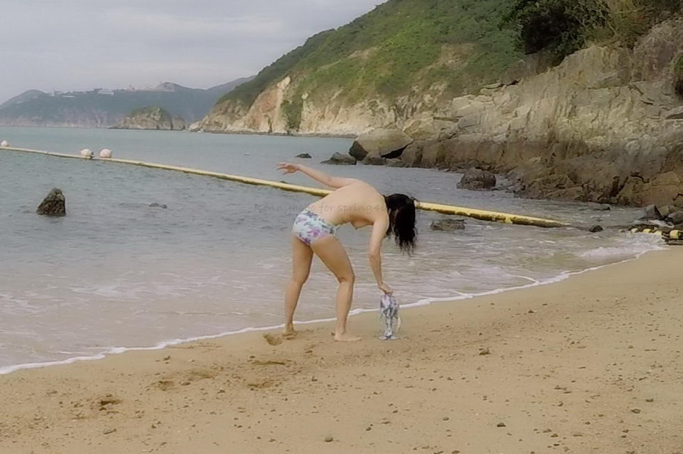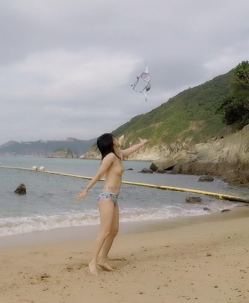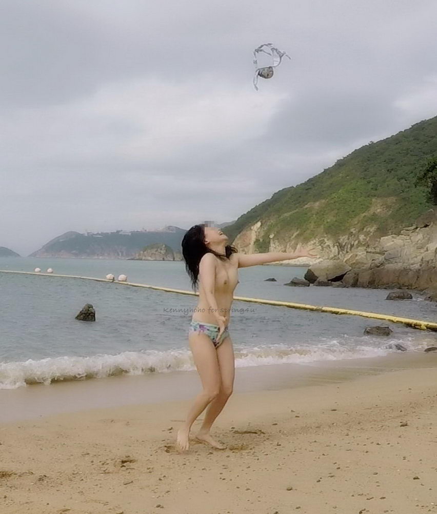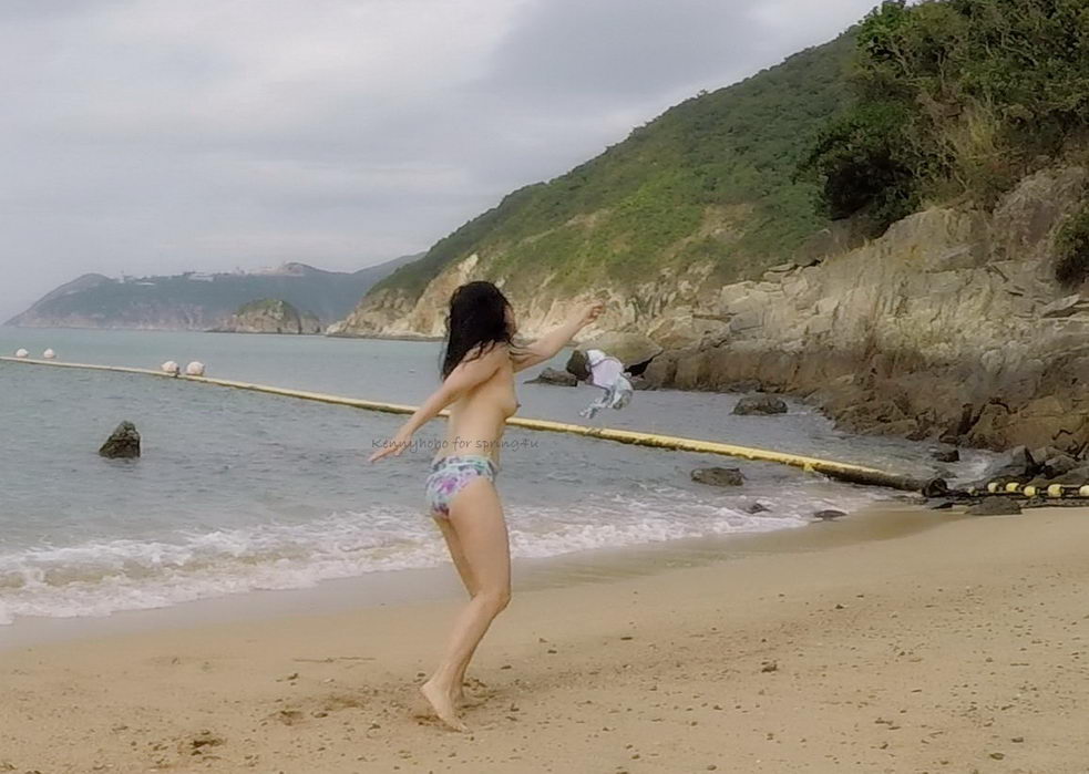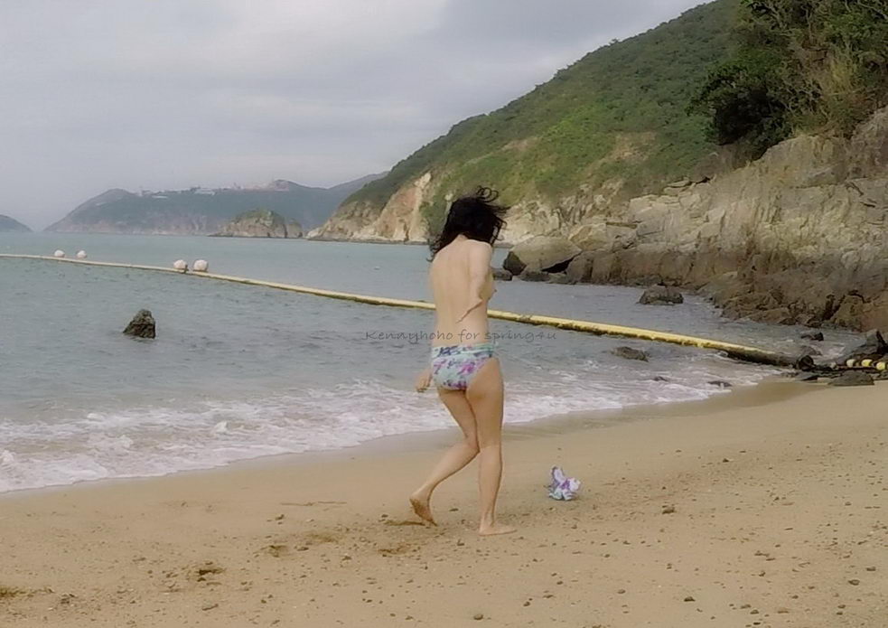 慢鏡見到小菲在沙灘跑,咪咪一拋一拋....