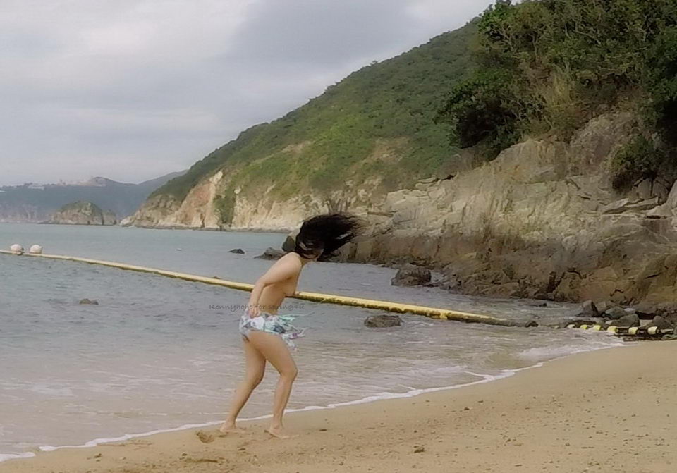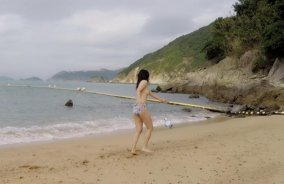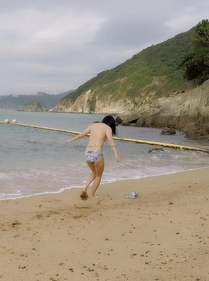小菲當天玩了幾次 "抛飛碟", 對遠處泳客視若無睹, 也算是盡興, 最後洋洋得意離開沙灘.