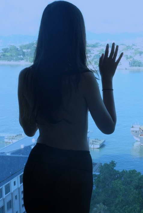 雙乳整個暴露出來,剛剛從落地窗反射中只能看到側乳,現在連乳頭都一清二楚,來看吧,不管是誰,