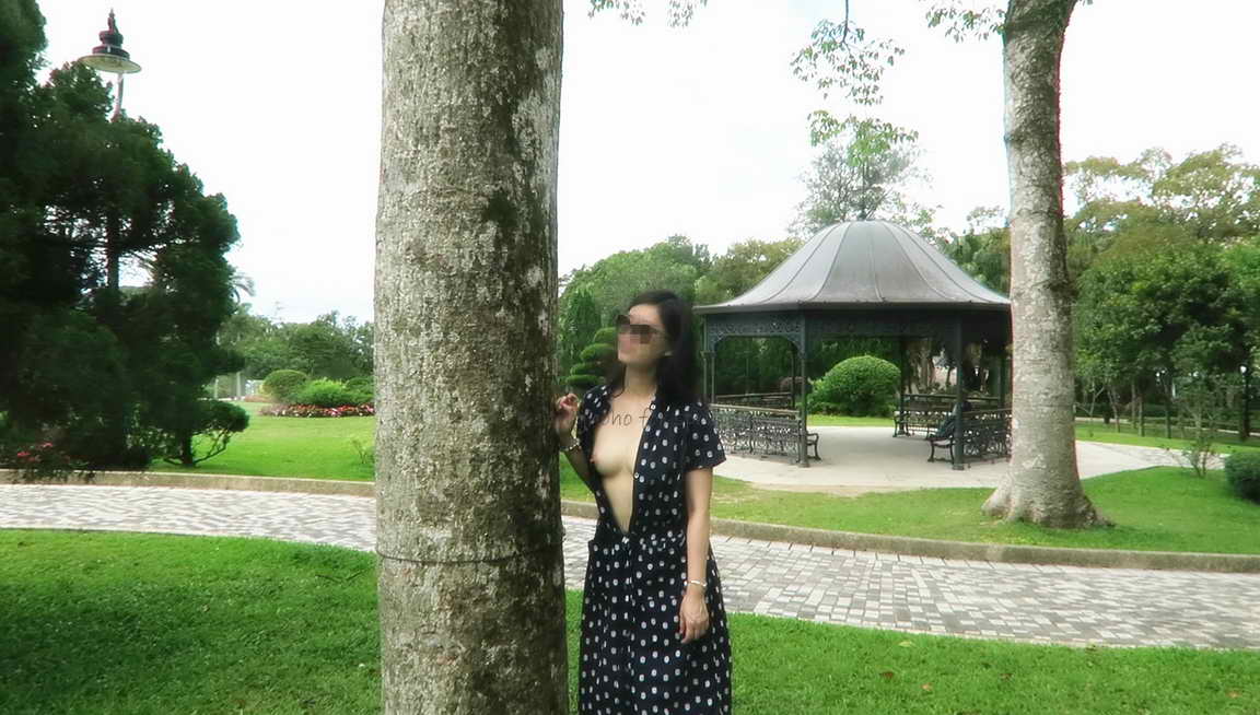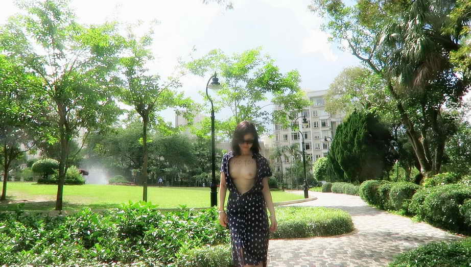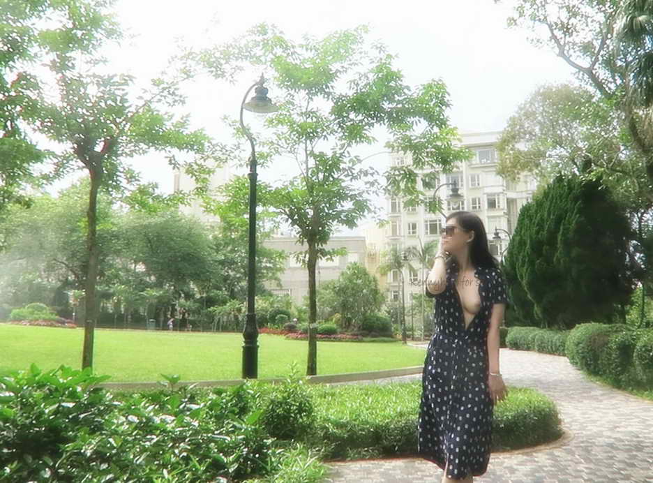 小菲穿了輕便春裝遊公園, 陽光之下覺得很熱, 不禁頻頻調整裙子, 原來, 夏天到了!