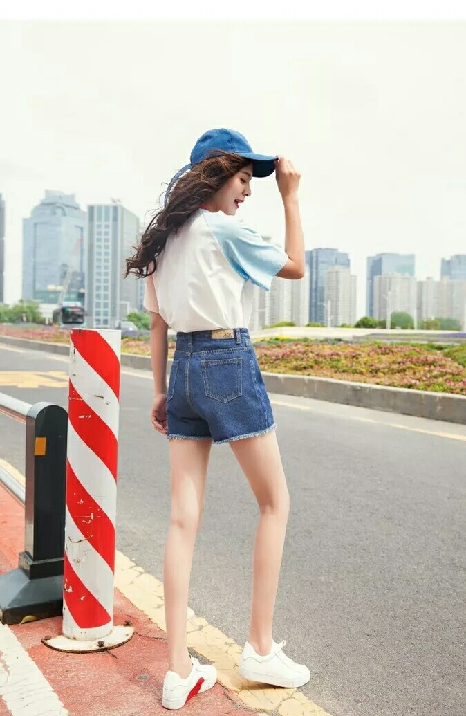 牛仔短裙,腳上穿了壹雙白色的休閑鞋,修長筆直的美腿赤裸裸的暴露在空氣當