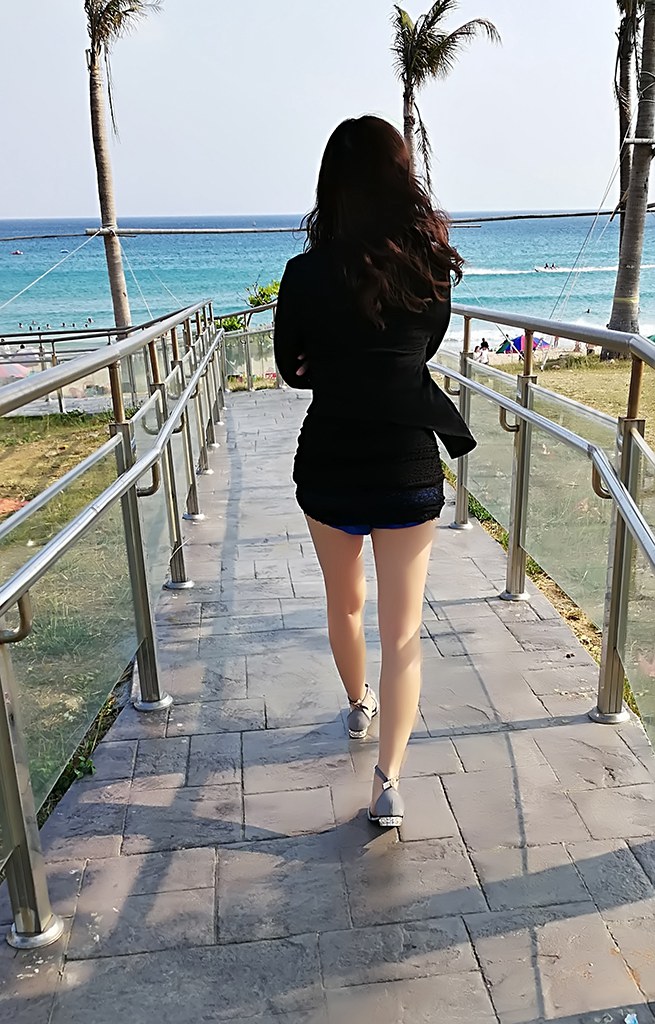 看起來好不誘人,也因為這短群,把小薇姐組的修長白皙美腿給展露的一覽無遺,走在路上,