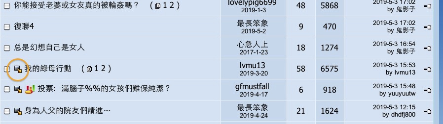 「有新回覆」的圖標是在每帖的左邊~