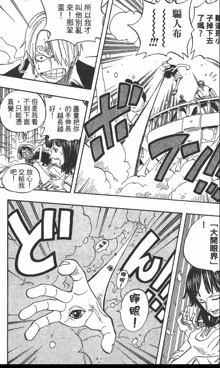 「好!好!好!我可以保證絕對不用強硬的手段。」面對待宰羔羊般的羅賓,我勝卷在握。她的花花果實對我完全無效。那我又有什麼可懼怕的呢?