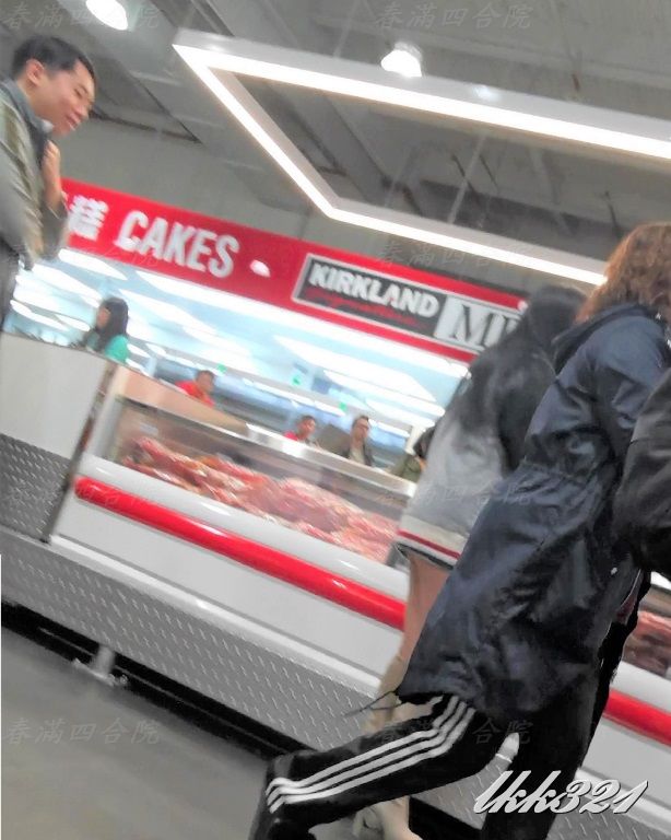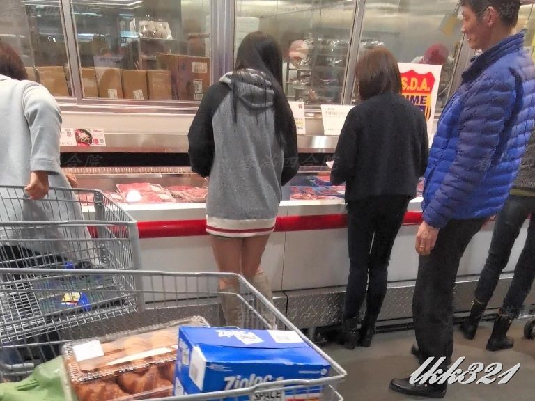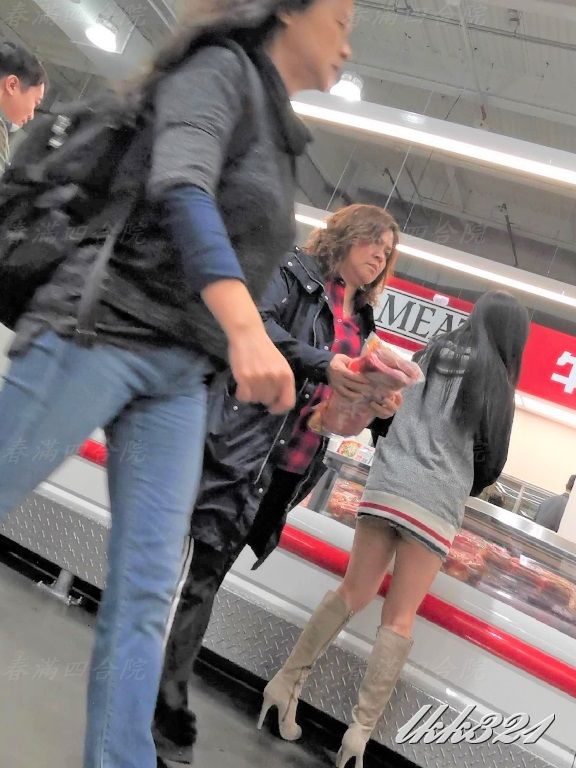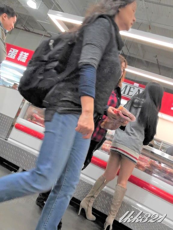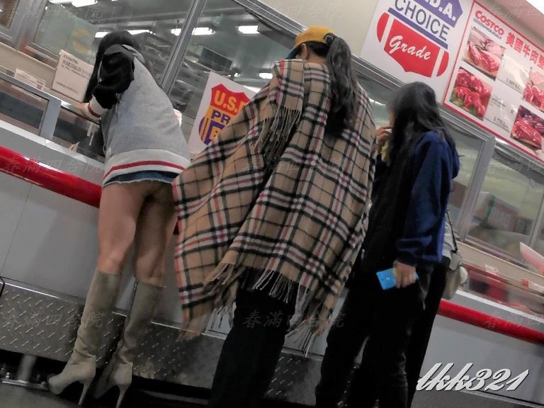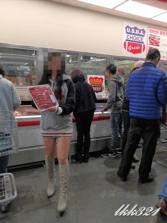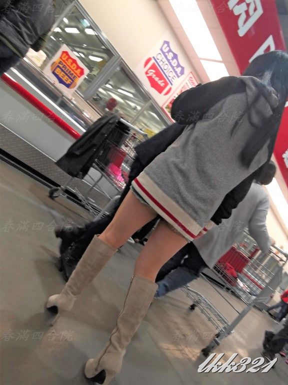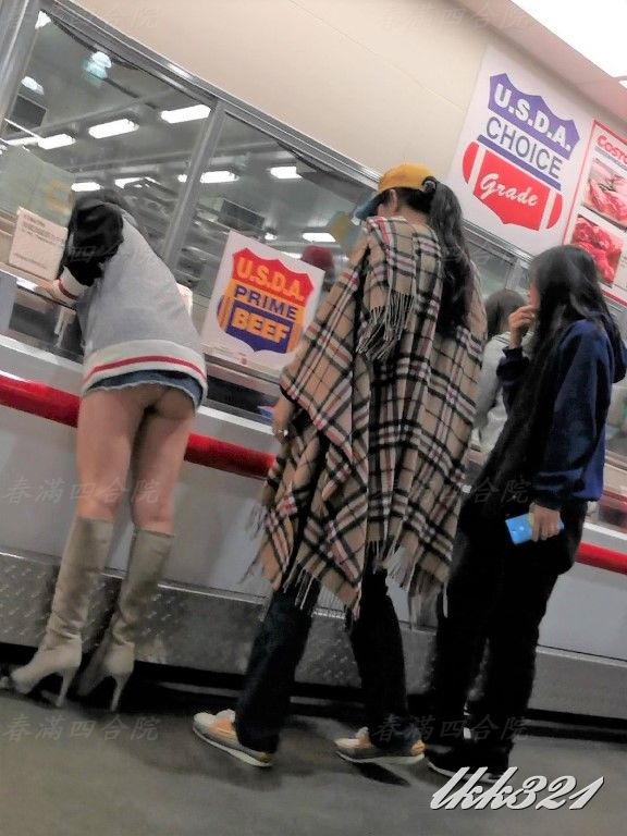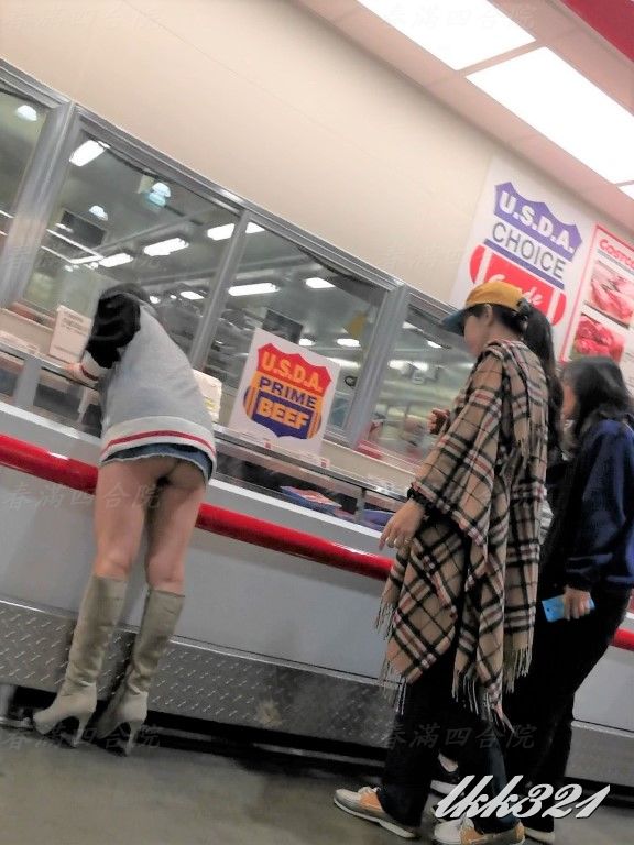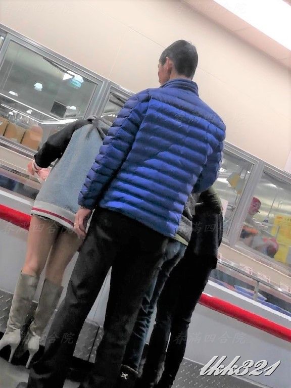婆大半臀部完全暴露在後方來來往往顧客的眼中