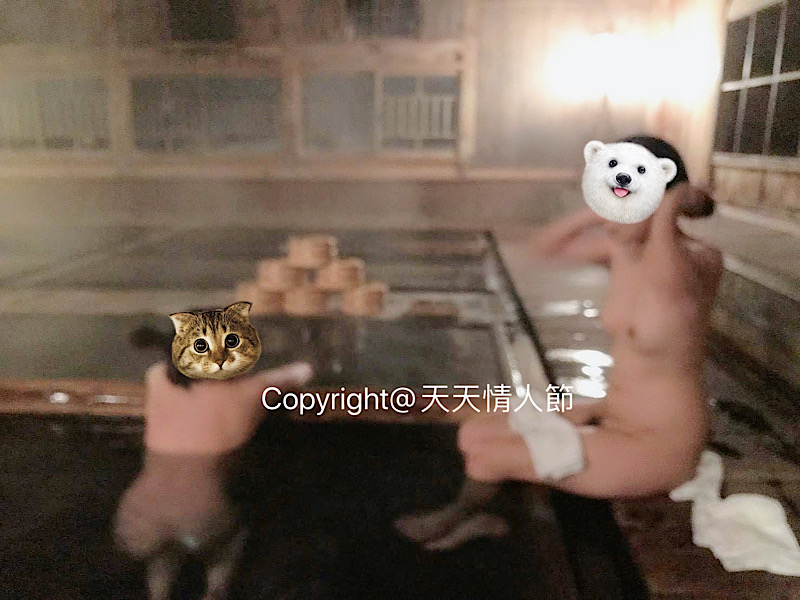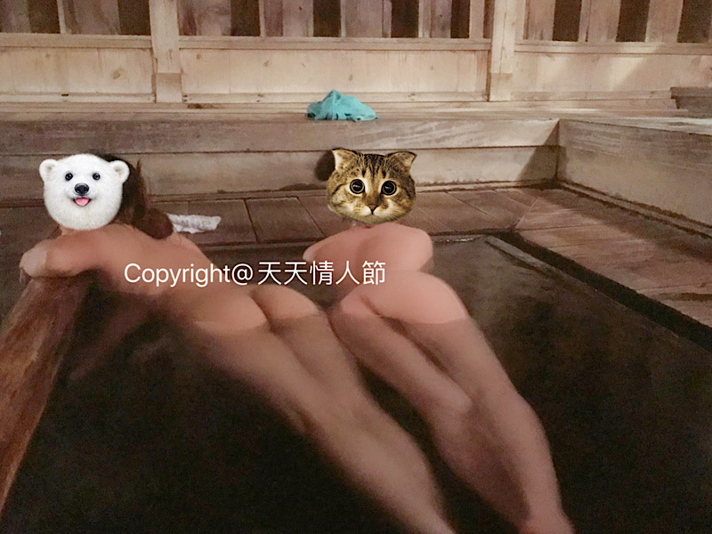 拍得女友的混浴照, 真是難得, 尤其是女友的身材這麽好, 吸引到男浴者的羨慕目光.