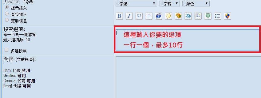 之前想发起投票,但是不知道怎么或者说是什么格式才能让选项显示出来