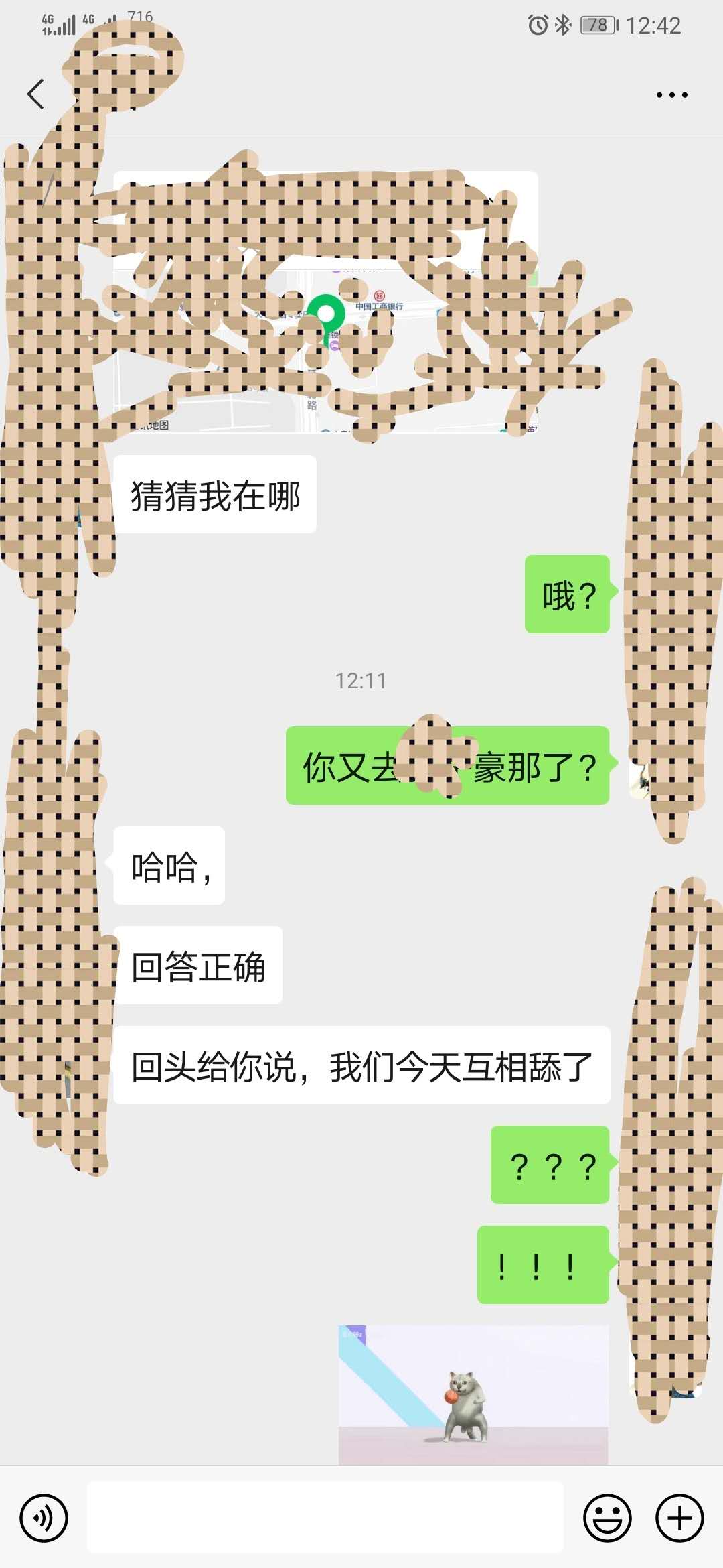 老婆就留豪吃了晚饭,晚饭上说话都很正常。晚上老婆说她现在跟豪说话都很自然了,还让我看聊天,老婆主动让看我也故作大度没有仔细看,就是大略翻了翻,说的还都是一些日常琐碎话题例如你喜欢哪个明星、什么东西怎么做好吃